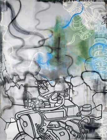 Metallic silver paint, acrylic, oil and enamel on canvas